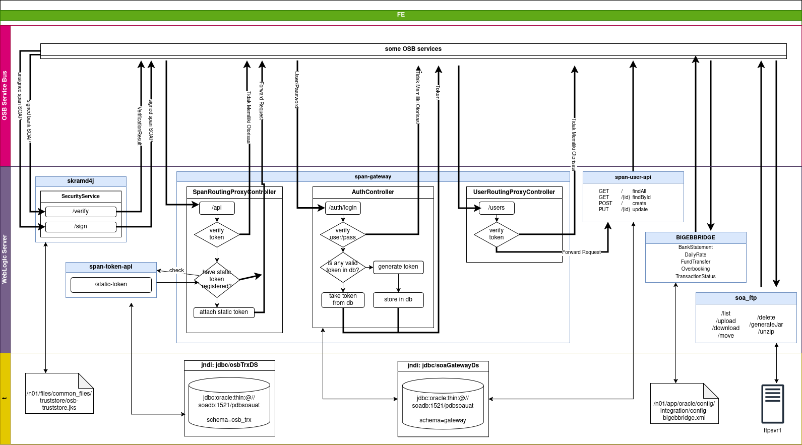 • 4 jar-based deployment (span-gateway, span-user-api, span-token-api, dan BIGEBBRIDGE)